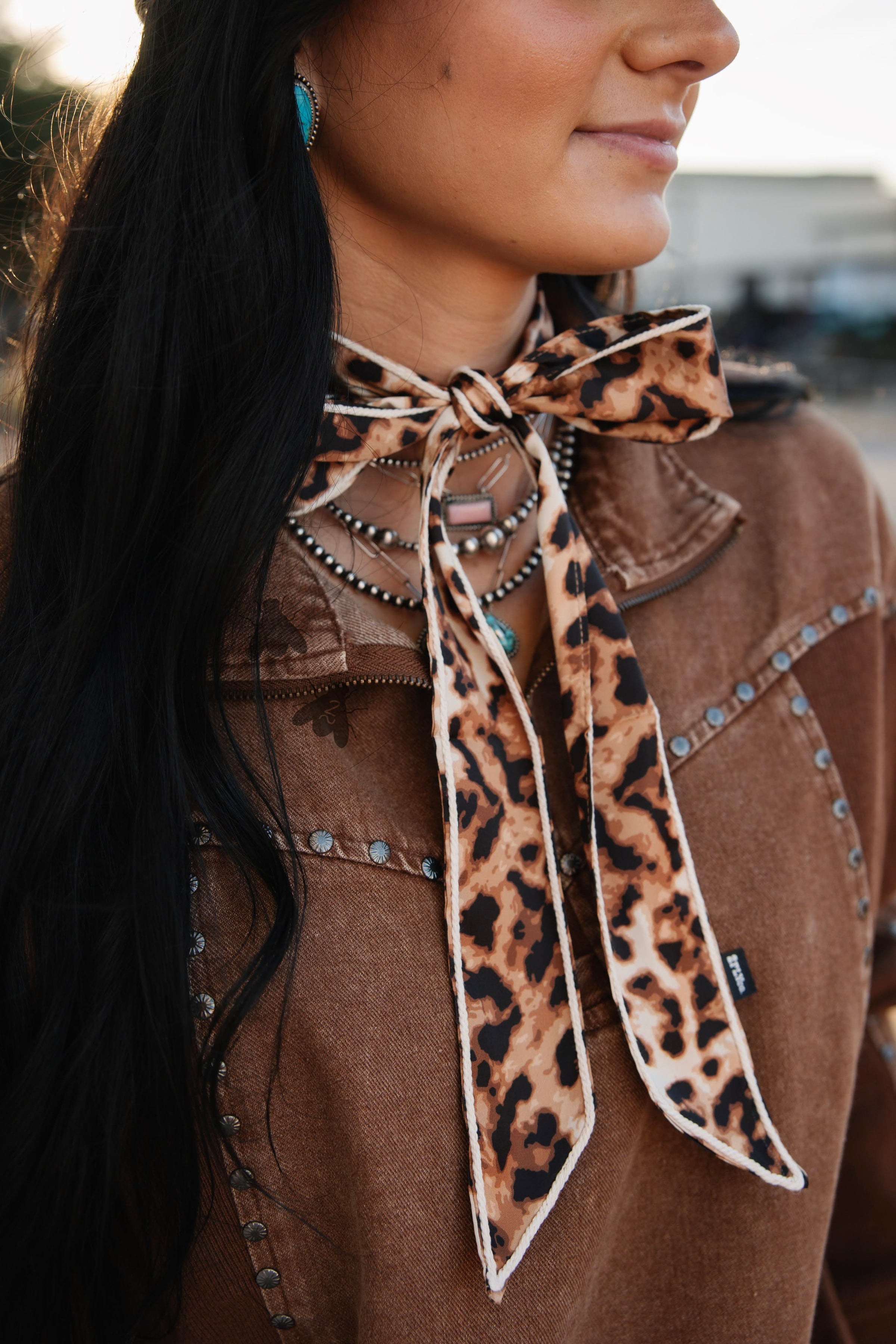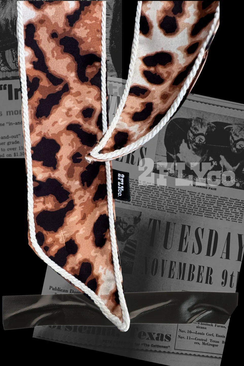we took our popular satin-like printed twillys and took her up a notch. it's a LEOPARD twilly with a rope like trim.