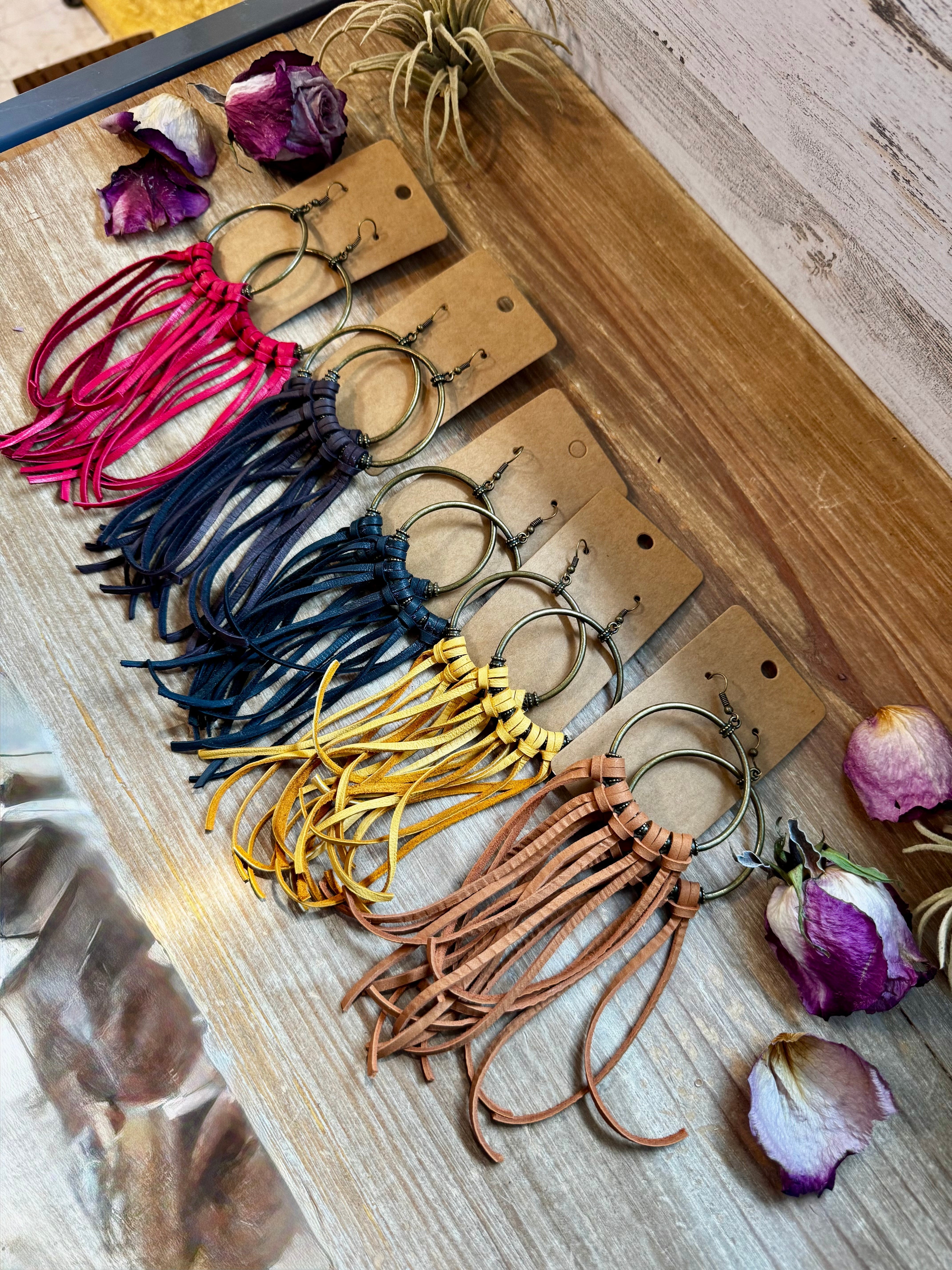 New in 10 options Deer Skin Leather Hoop Earrings – 6.5" – Final Edition – USA Made $30.00 Unit price /per 10 Color(s) Available
