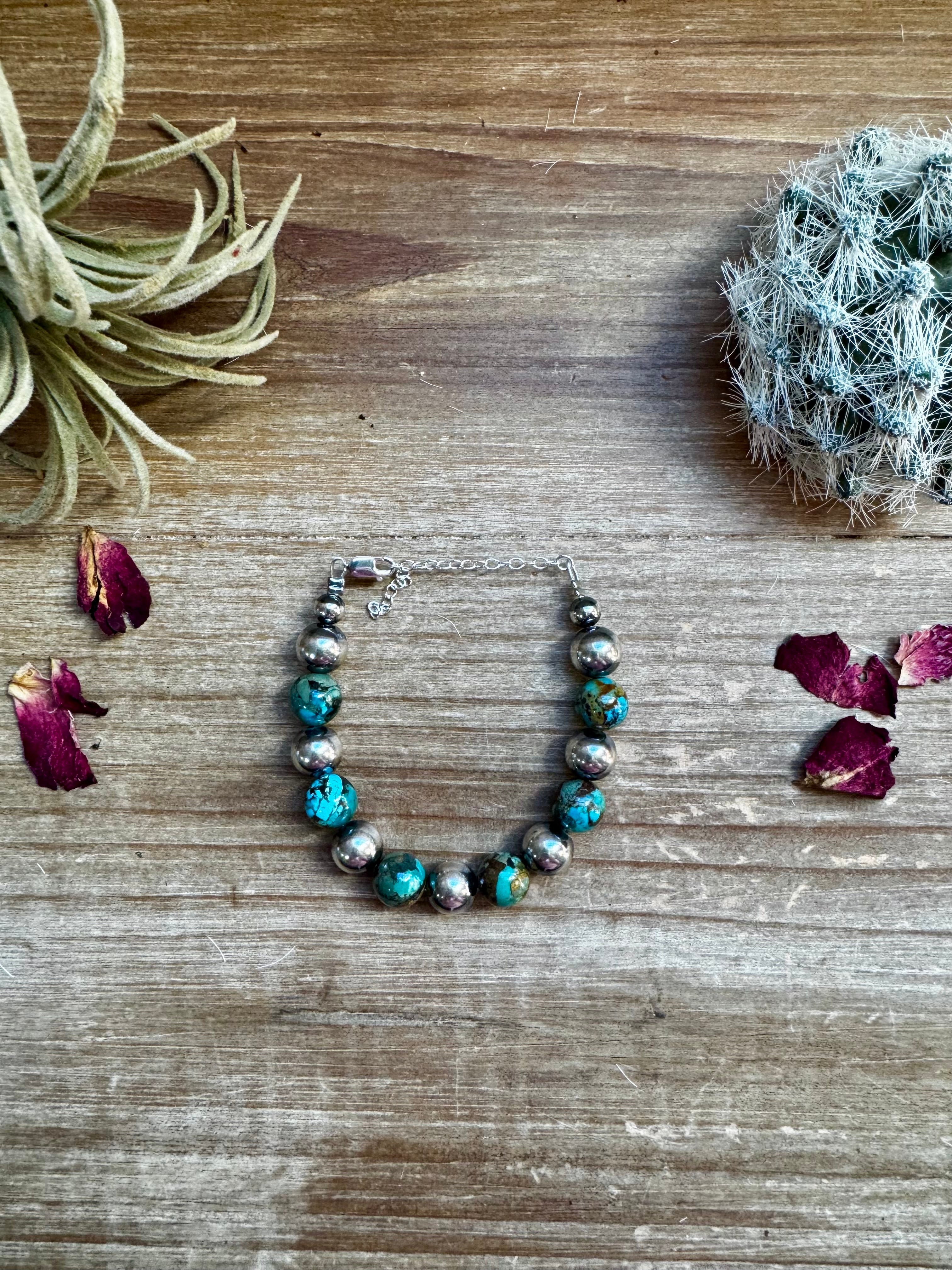 Sold Out 15-Inch Sterling Silver Pearl Necklace with Turquoise – One-of-a-Kind $150.00 Unit price /per