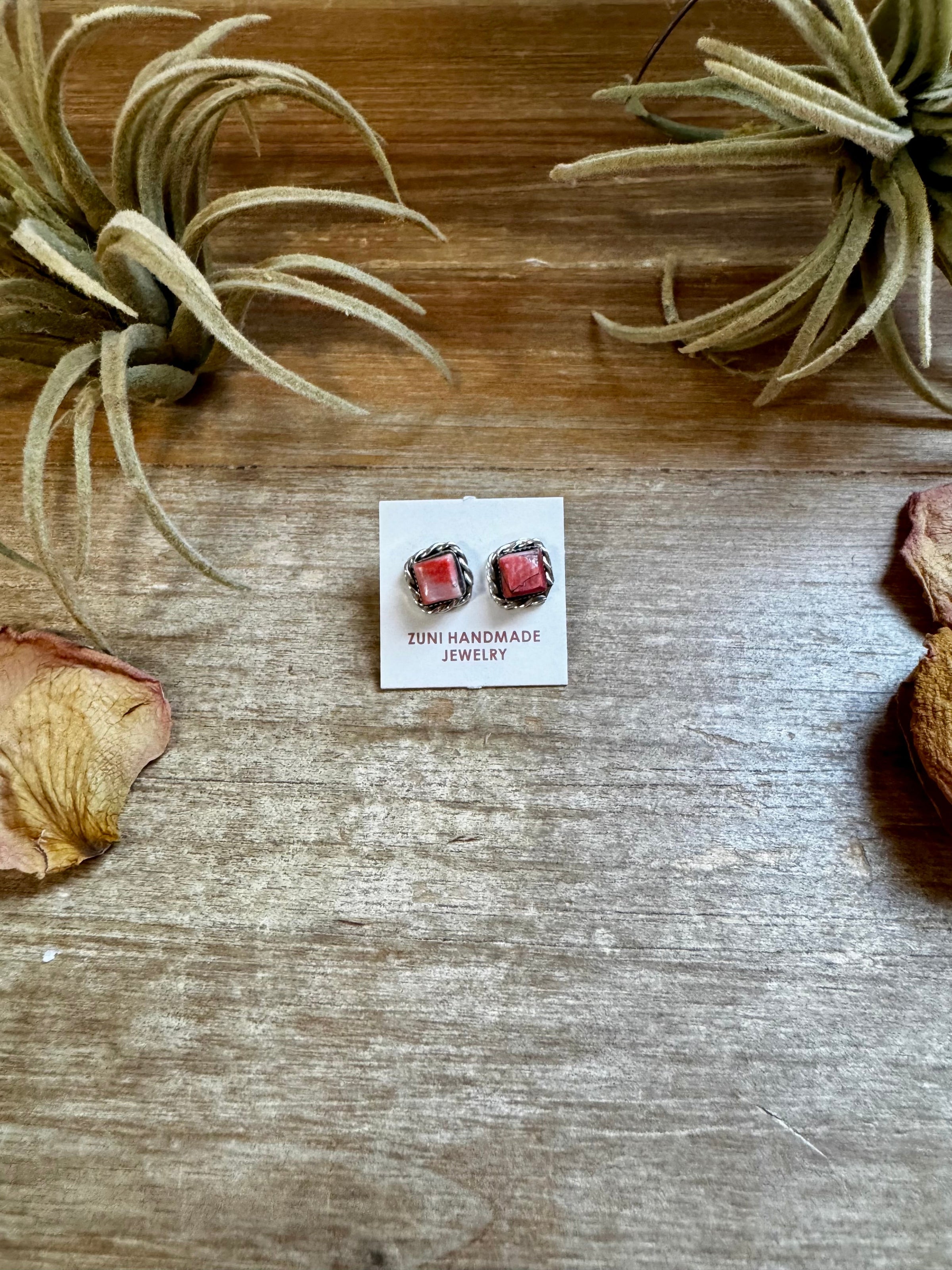Mini Square Spiny Oyster Stud Earrings – Zuni Handmade, Sterling Silver