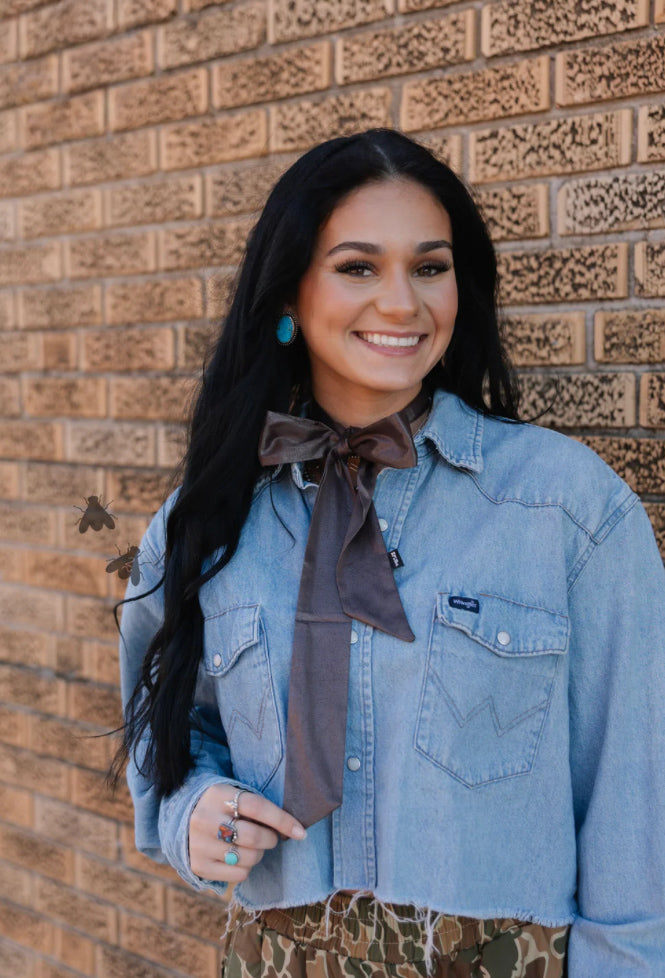 Get the preppy look by pairing it with a collared shirt, tying it in your hair, or giving that LOUIE handbag a Western flare by tying the handles. Again, the options are seriously endless.