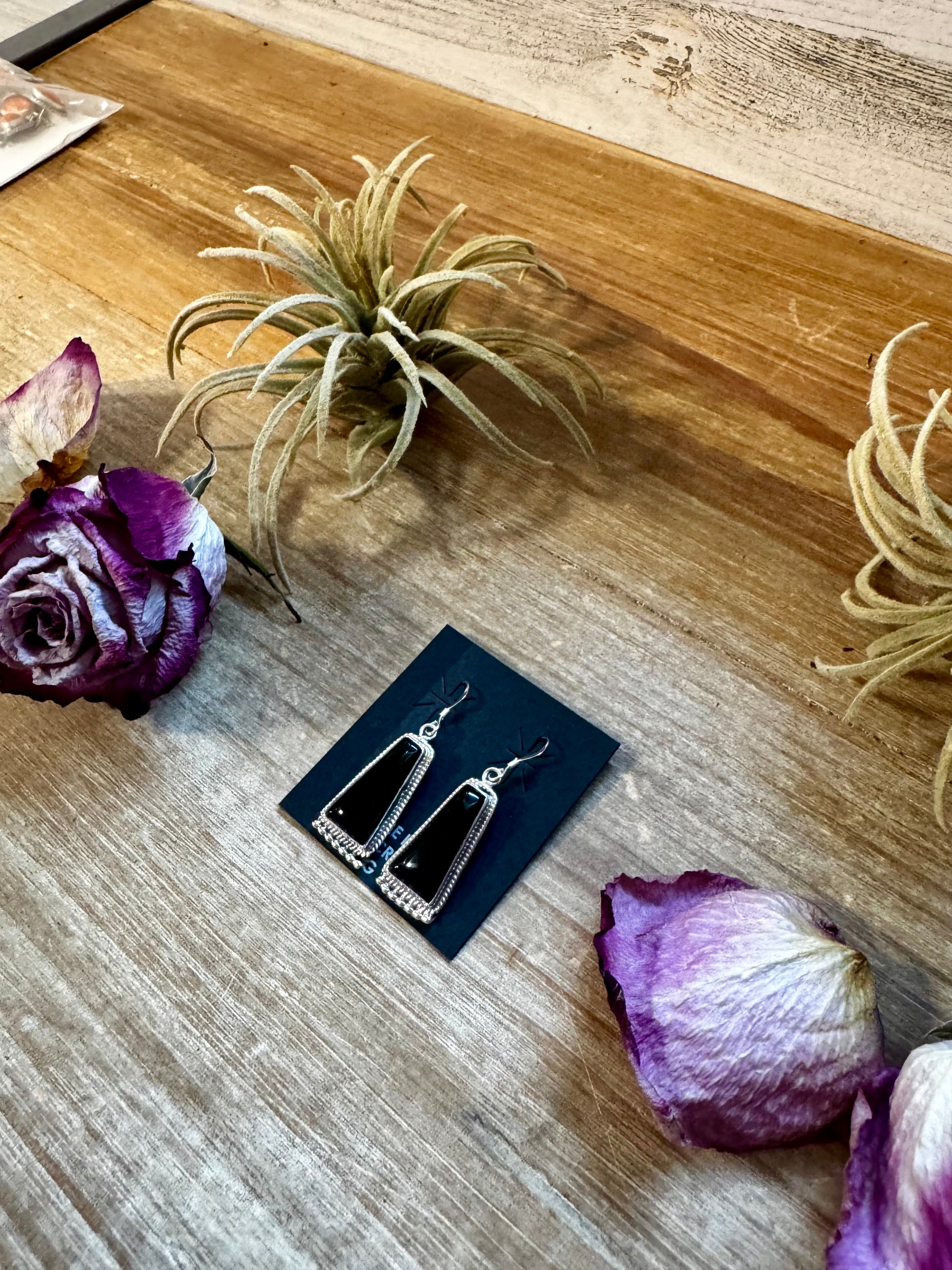 Elegant and timeless, these 1.75-inch dangle earrings feature sterling silver pearls paired with sleek black onyx for a classic contrast. Handmade in the USA, they’re lightweight enough for all-day wear yet bold enough to make a statement. Perfect for adding a touch of chic sophistication to any look.